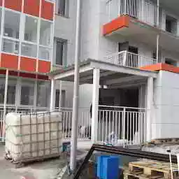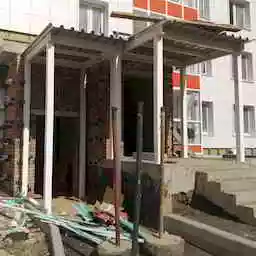 Сборные и сварные металлоконструкции для установки на фасадах многоэтажных зданий и сооружений. Металлические перекрытия над входами в здания, крыши из профлиста, защитные решётки, конструкции неотапливаемых тамбуров, балконные и наружные лестничные ограждения, опоры и несущие балки входных групп и технических помещений, обрешётка для крепления стеновых облицовочных панелей и другие подобные изделия.